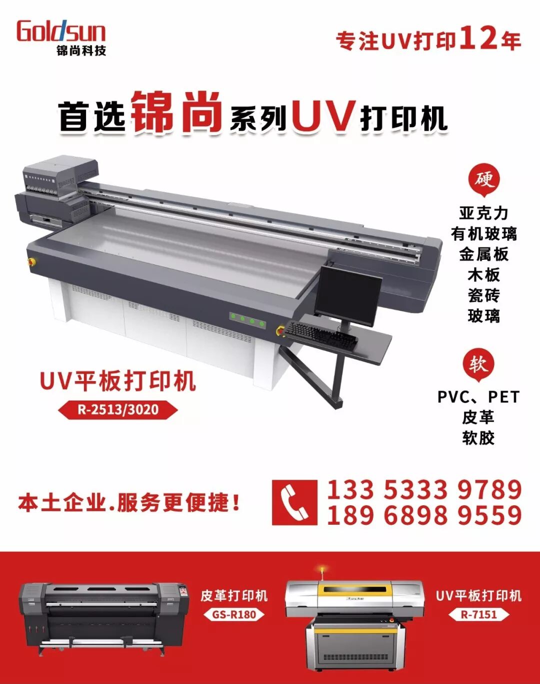 锦尚公司主营产品:UV平板打印机、UV卷板打印机、UV卷对卷打印机、软膜UV喷印机、皮革喷印机、压电式写真机、数码印花机;理光、京瓷、东芝喷头系列工业打印机;UV固化墨水等。并在广告制作、标识标牌、展览展示、艺术画复制、手机外壳、个性化礼品定制、工艺品、薄膜开关、包装印前打样、电子产品、饰品、金银制品、家用电器外观及工业配套等诸多领域形成良好的应用解决方案。 PVC证件卡