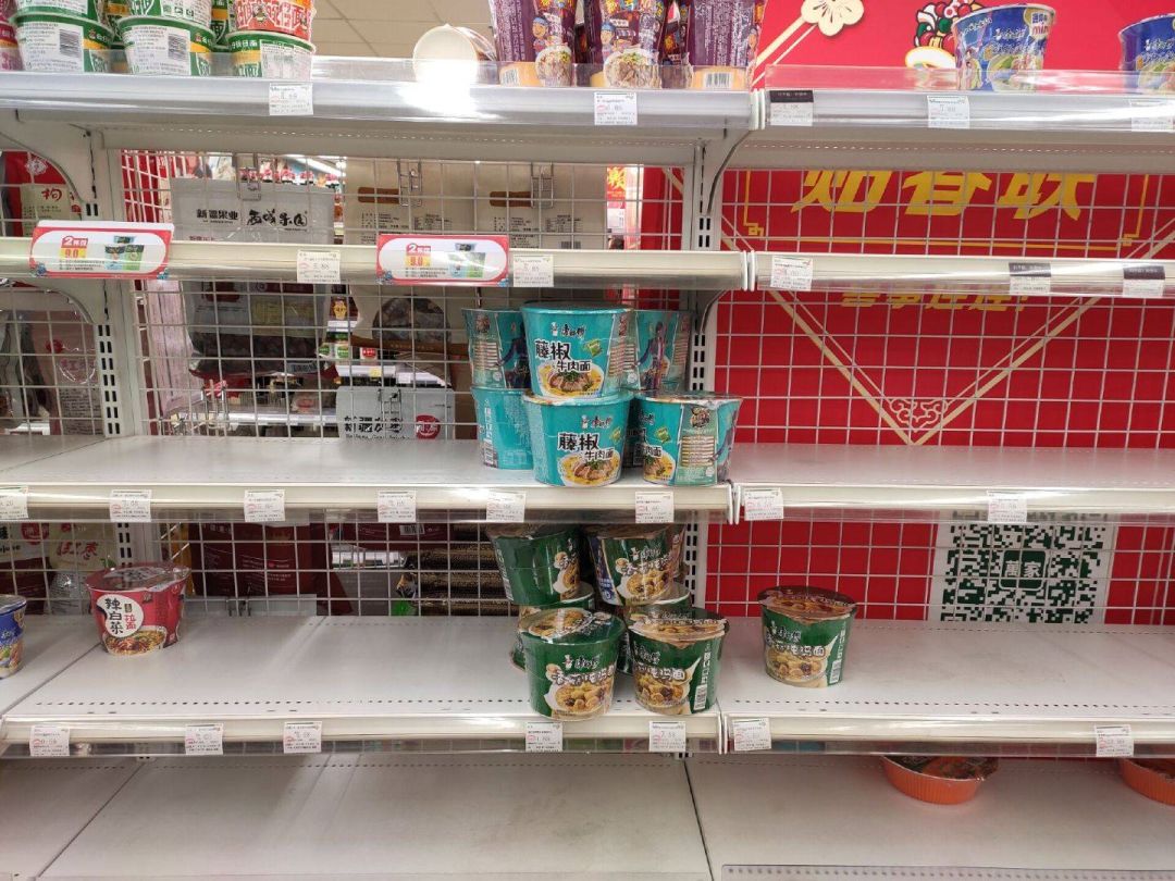 大家都出不了门,很多小区也实施封闭式管理,快递、外卖都进不来,民众的生活变得非常不便。往往鼓起勇气出门去一次超市、菜场,会屯一周以上的食品材料。因而方便面、火腿肠、午餐肉等食品的销量反而逆势上涨。