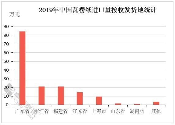 2019年,中国瓦楞纸进口收发地主要集中在广东省、浙江省、福建省、江苏省,进口量分别为84.51万吨、21.20万吨、21.09万吨、14.70万吨。 其中2019年中国广东省进口量位居首位,占总进口量的53.68%,另外浙江省为2019年中国瓦楞纸进口收发地的次位,占比为13.47%,其余省份占比略小。