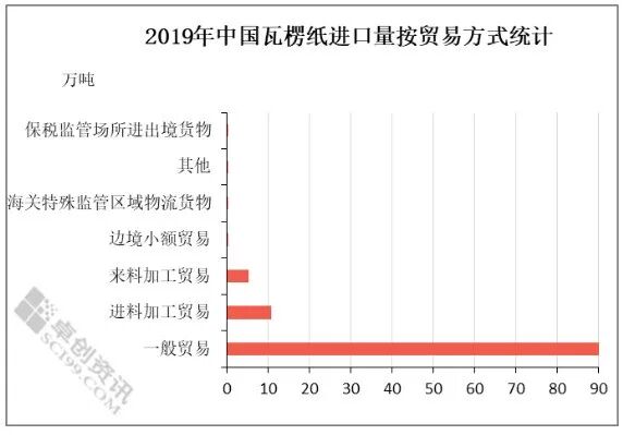 其中,一般贸易方式的瓦楞纸进口量占到了总出口量的89.38%,其余贸易方式整体占比较小。