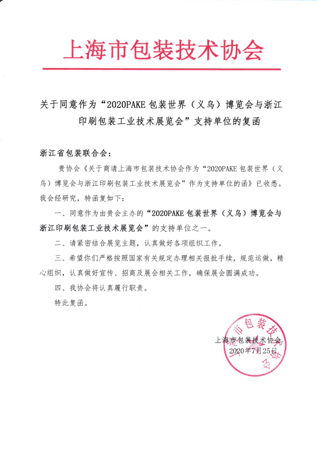 上海市包装技术协会正式成为 浙江印刷包装工业技术 展览会支持单位